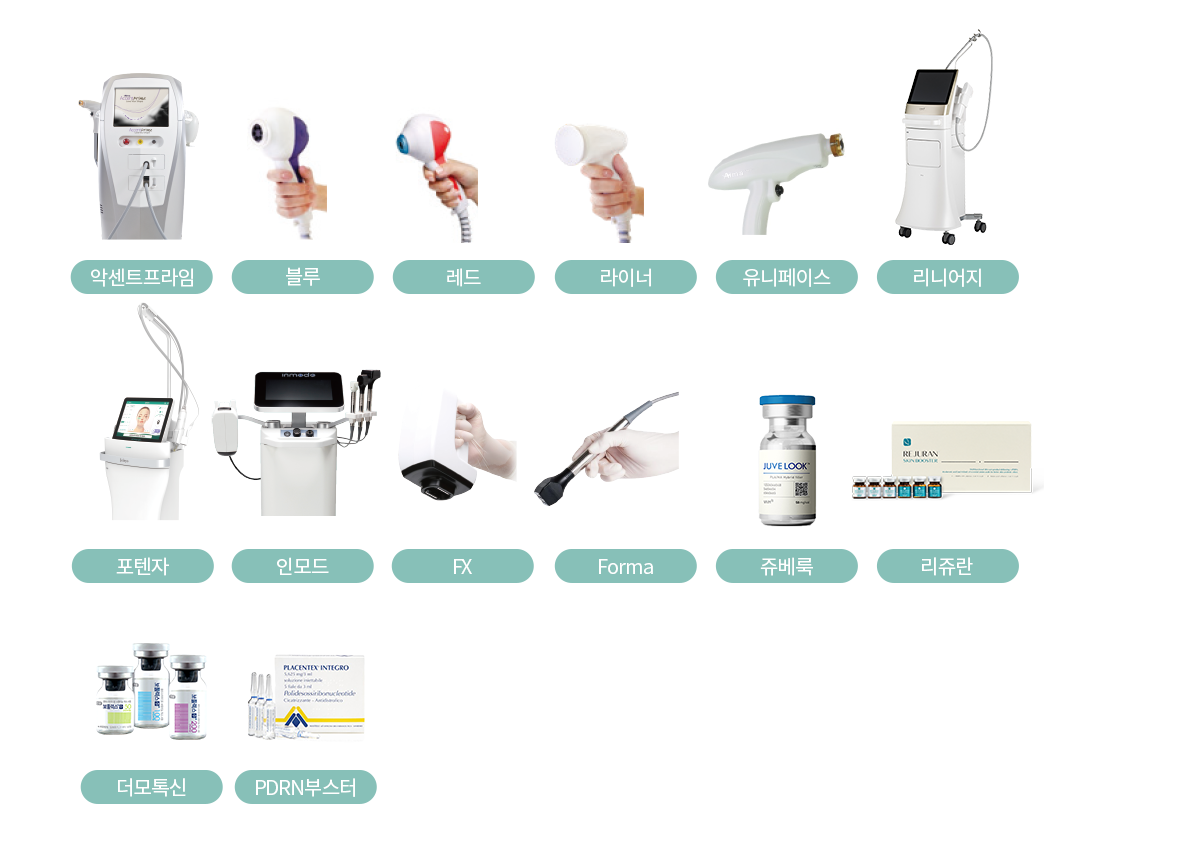 인모드Fx, 인모드forma, 쥬베룩, 리쥬란, 더모톡신, PDRN부스터
